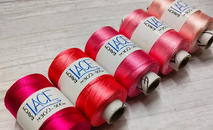 Aspecto y tacto suave y sedoso que dibuja labores sofisticadas y elegantes. Compuesto por una hebra de rayón y una hebra de poliéster tiene un grosor equivalente a un hilo de algodón del número 50.